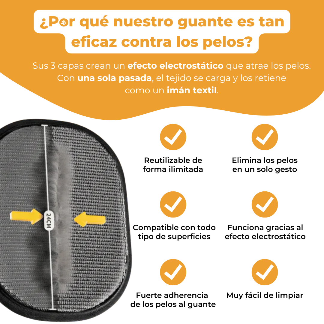 Resultado: el pelo se atrae y se queda adherido al guante al instante, sin salir volando por todas partes.